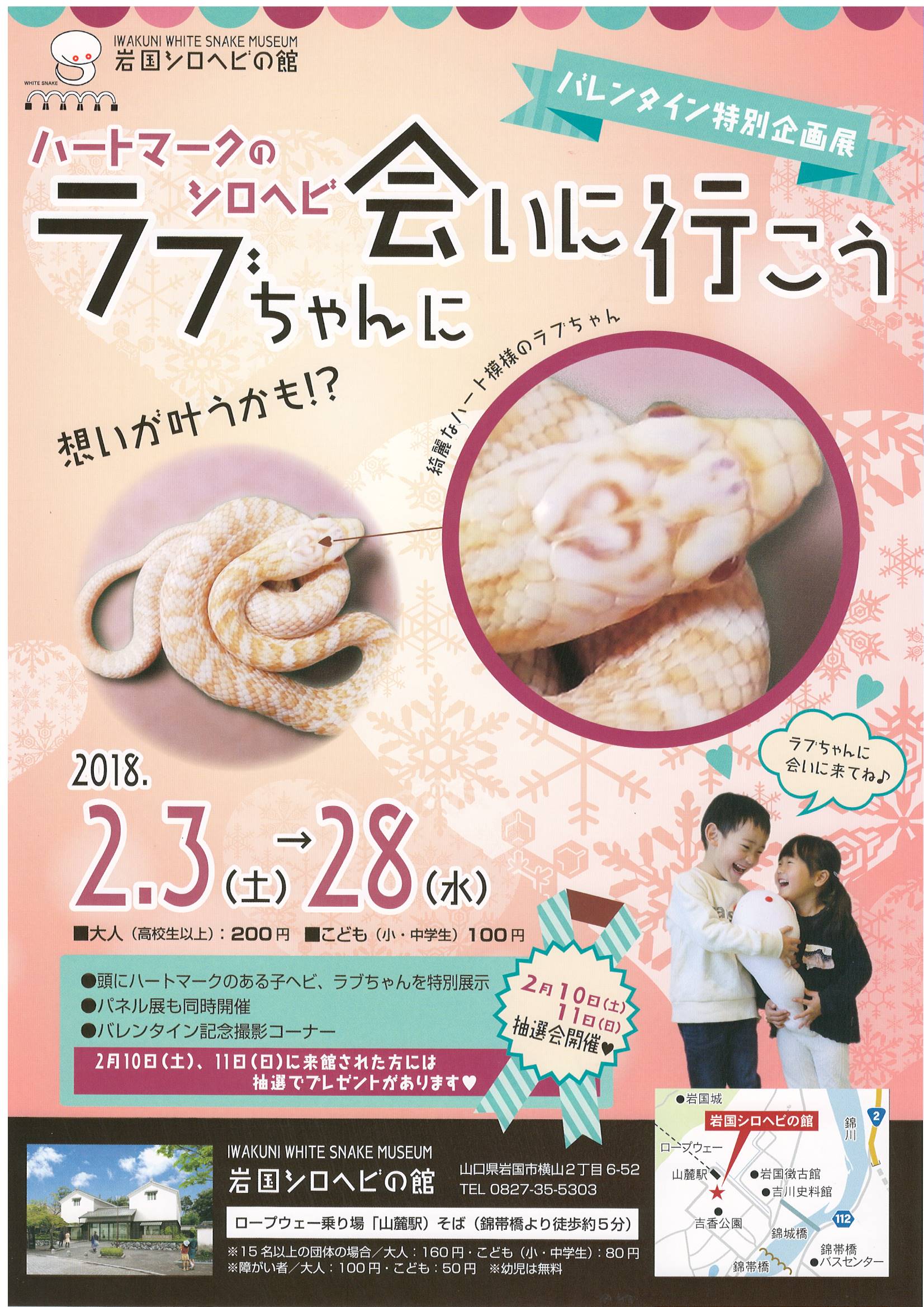 バレンタインデーにちなみ、頭にハートマークのあるシロヘビ「ラブちゃん」を特別展示します。期間は、2月3日(土)~2月28日(水)です。